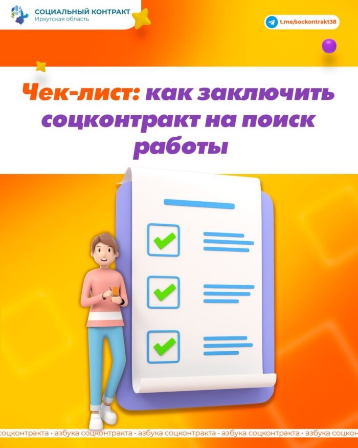 небольшие чек-листы по всем направлениям. 📌Сегодня расскажем о поиске работы. Итак, вот что потребуется сделать, чтобы заключить соцконтракт по этому направлению: