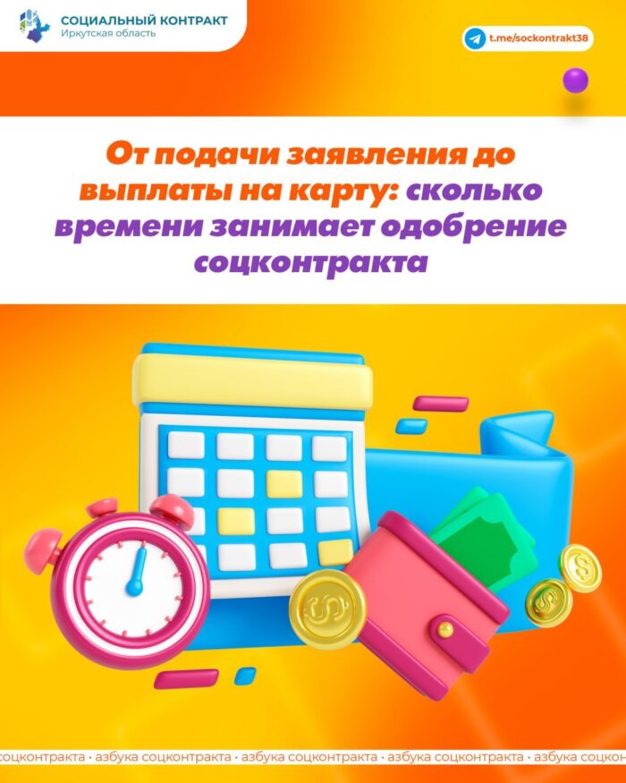 В некоторых случаях на одобрение соцконтракта и выплату денег может потребоваться меньше или, наоборот, больше времени. От чего зависят сроки? От конкретной ситуации. Есть несколько нюансов на разных этапах оформления соцконтракта, разберемся с ними по порядку. Подача заявления Вы подаете заявление в управление соцзащиты населения по месту жительства (пребывания), МФЦ или через «Госуслуги». Срок рассмотрения начинается с этого или следующего дня. Проверка документов, бизнес-плана и оценка вашей ситуации В течение 10 рабочих дней после подачи заявления вы приносите в соцзащиту необходимые документы, в том числе бизнес-план (для соцконтракта на ИП или ЛПХ). За это время специалисты рассматривают полученные материалы и проверяют, действительно ли вы или ваша семья подходит под условия заключения соцконтракта. Срок рассмотрения документов может быть продлен на 20 рабочих дней. На это есть несколько причин: специалистам нужно больше времени для проверки документов или вам потребуется доработать бизнес-план, пройти тестирование либо обучение предпринимательским навыкам (для ИП и ЛПХ). Составление программы социальной адаптации Когда документы приняты, вас приглашают в соцзащиту для составления ПСА – вашего плана действий по выходу из трудной жизненной ситуации. На это может уйти несколько дней. Приглашение на межведомственную комиссию Один из важнейших этапов: вы должны защитить свой бизнес-план (для ИП и ЛПХ), представить ПСА и ответить на вопросы комиссии. Комиссия назначается в течение 5 рабочих дней. Комиссия может сделать замечание и отправить бизнес-план и (или) ПСА на доработку. Внести изменения нужно в срок до 5 рабочих дней. Вынесение решения комиссии После того как вы представили ПСА, бизнес-план и ответили на вопросы, члены комиссии выносят решение об одобрении или отказе в соцконтракте. Подписание соцконтракта Если всё в порядке и комиссия одобрила ваш проект, вас приглашают подписать соцконтракт. Обычно это занимает до 5 рабочих дней, в зависимости от загруженности органа соцзащиты. Выплата денежных средств После подписания соцконтракта деньги приходят на счет в течение 30 дней. У каждого банка свой срок зачисления. Сроки зачисления денежных средств зависят от финансовых операций, а также от регламента работы кредитной организации. Выплатной период длится до 30 или 31 числа текущего месяца.