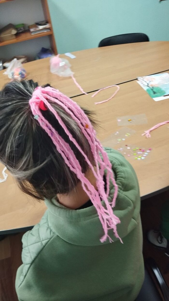 модный аксессуар –настоящий спаситель для тех, кто хочет быстро и оригинально преобразить свою прическу. Он прекрасно подходит как детям, так и взрослым, помогая каждому подчеркнуть свою индивидуальность и создать неповторимый образ. Афрокосы, кстати, уже не первый год остаются на пике популярности, благодаря своей яркости и универсальности – они отлично смотрятся на волосах любого типа. Каждая участница с гордостью унесла домой свое собственноручно изготовленное украшение. Многие девочки не удержались и сразу же примерили свои новые резиночки с косами, восхищаясь результатом. Но это занятие было не только увлекательным, но и невероятно полезным. Процесс плетения кос отлично развивает мелкую моторику, тренирует внимание и воспитывает усидчивость –качества, которые очень важны для гармоничного развития. Специалист по реабилитационной работе в социальной сфере Дрогунова К.А. Специалист по комплексной реабилитации Костюк Ю.Р.