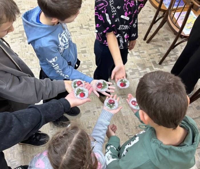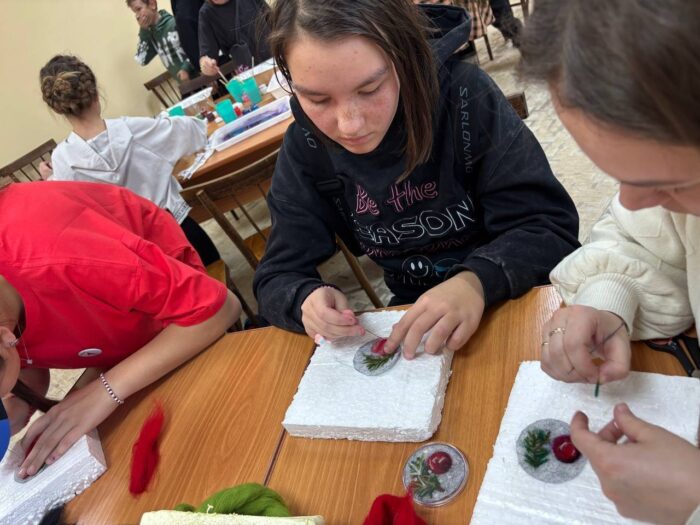 Не менее интересным был мастер-класс «Вышивка шерстью на холсте методом сухого валяния «Ёлочный шар», который провела И.А. Мусихина. Этот мастер-класс понравился как детям, так и взрослым, ведь создание ярких брелоков стало настоящим праздником для всех участников.