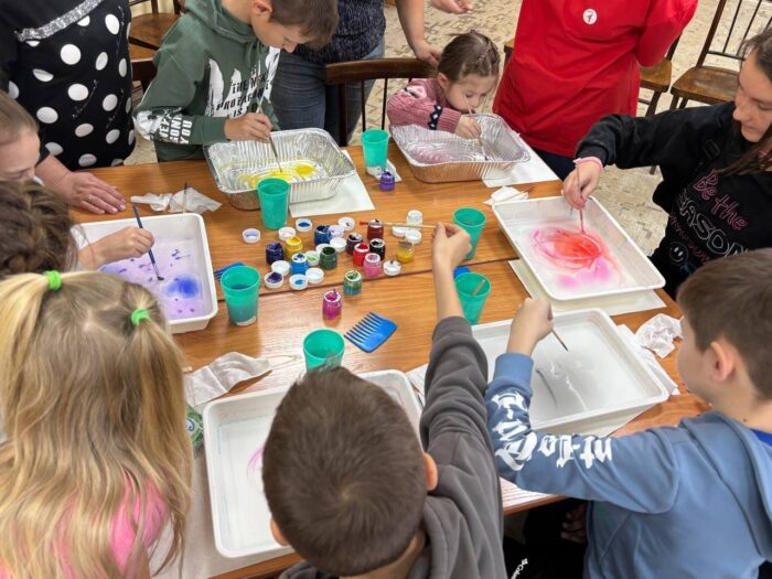 После музыкальной части программы участников ждали увлекательные мастер-классы, которые позволили детям проявить свои творческие способности. Мастер-класс «Ёлочка», проводимый Р.Р. Зайцевой, оказался особенно популярным. Ребята с восторгом рисовали на воде, создавая удивительные узоры, которые завораживали своей красотой и оригинальностью.