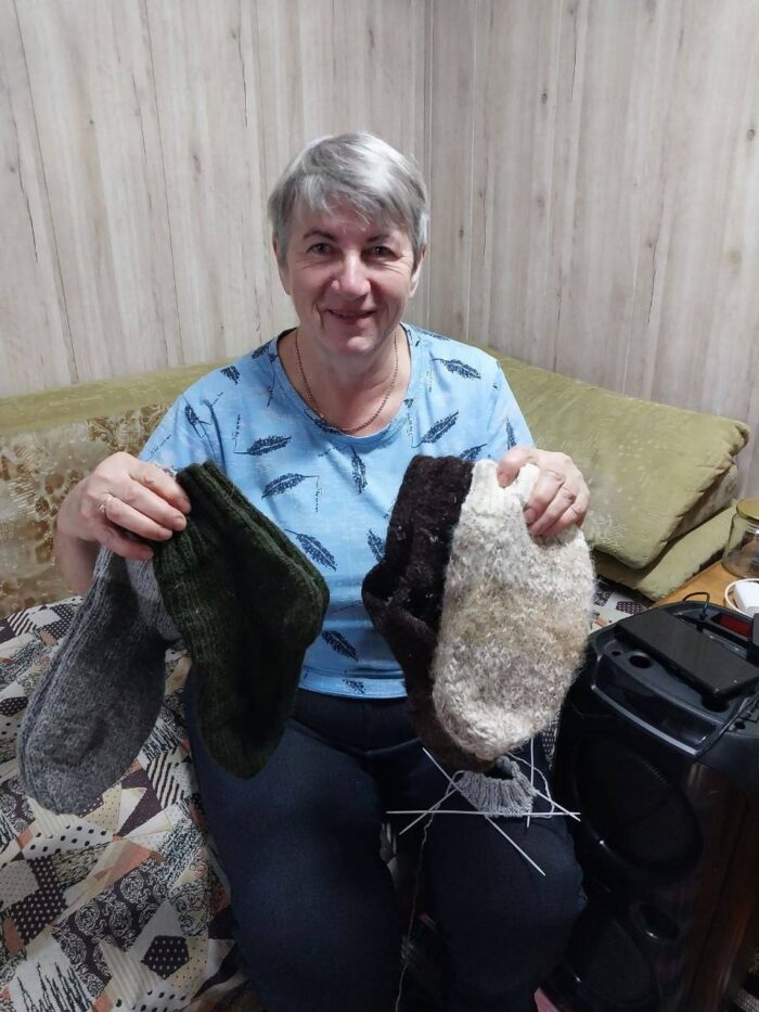 В этот день не остались в стороне и наши получатели социальных услуг, «серебряные» волонтеры с. Моисеевка и с. Черемшанка. Шангареева Валентина Алексеевна, Татьяна Ивановна Ломаченко, Елисеенко Татьяна Ивановна связали теплые носки, тапочки для участников специальной военной операции и детей, находящихся в Центре помощи детям. Наши «серебряные» волонтёры — это мощная поддержка, надежный тыл, их опыт и душевное тепло бесценны; это команда, которая участвует во всех общественно-значимых событиях, в различных добровольческих инициативах: