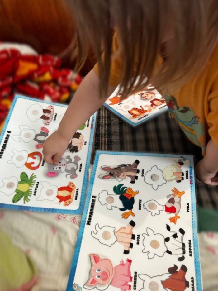 Во время занятия дети занимались с помощью развивающих игрушек, которые способствуют всестороннему развитию и стимулируют познавательную активность. В игровой форме малыши работали с пирамидкой, собирали пазлы, рассматривали и играли с фигурками животных. Такие игрушки помогают развивать мелкую моторику, внимание, логическое мышление и воображение.