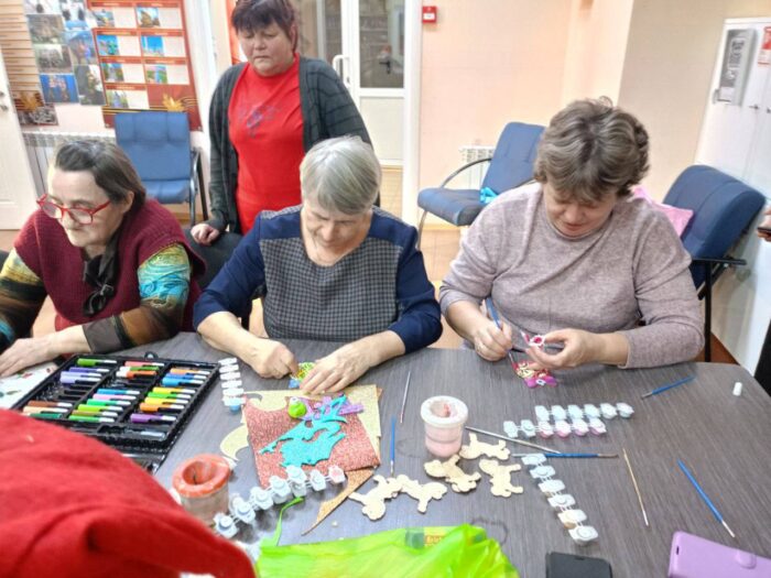 В преддверии самого волшебного праздника в году Моисеевский ДД превратился в настоящую фабрику чудес. Здесь, в уютной и праздничной атмосфере, прошёл особенный мастер-класс по созданию новогодних игрушек, который объединил за одним делом получателей социальных услуг, социальных работников и младших школьников.