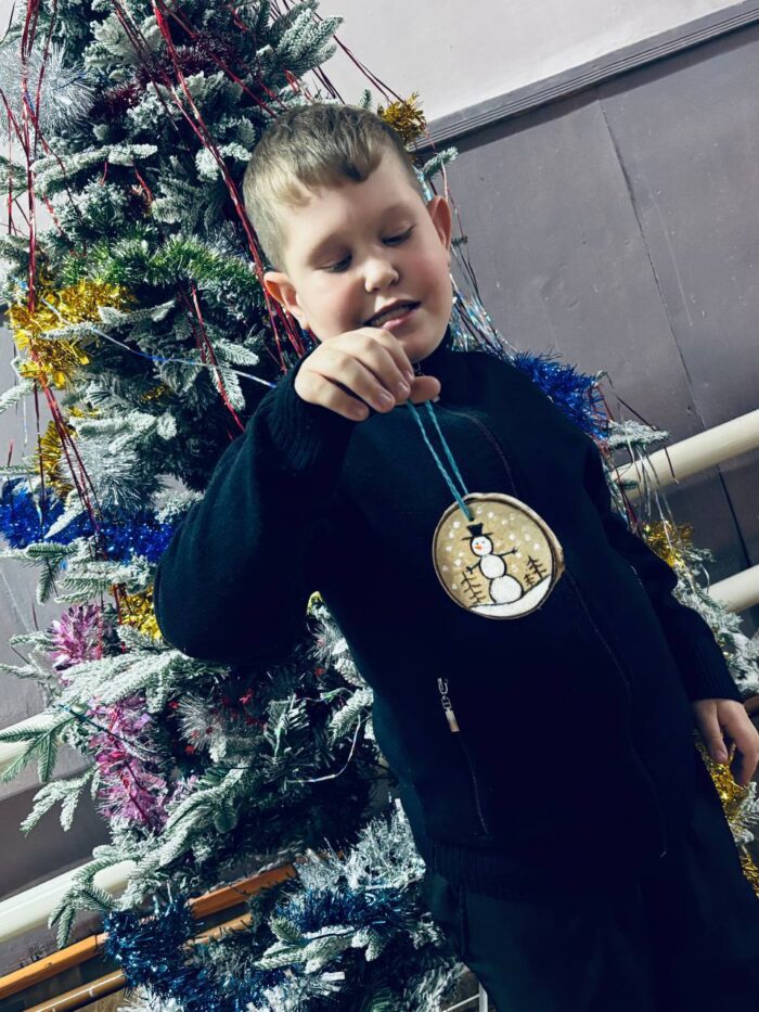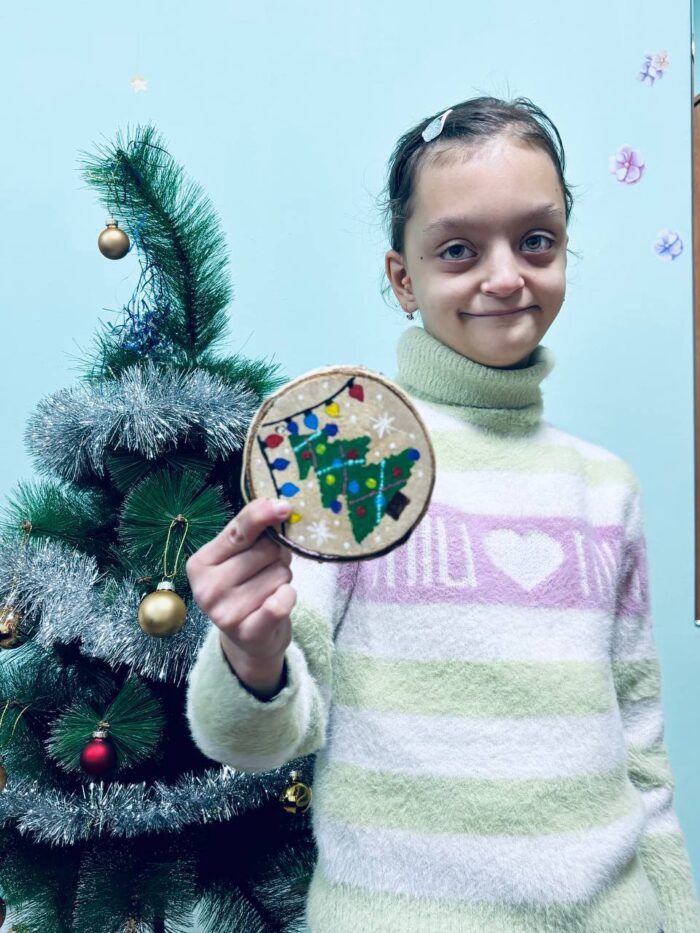 возможностями, а также на их социальную интеграцию. В процессе работы мастерской участники с большим энтузиазмом занимались изготовлением ёлочных игрушек из деревянных срезов. Каждому ребенку была предоставлена возможность выбрать технику, с которой он хотел бы работать: некоторые занимались выжиганием узоров, в то время как другие предпочли раскрашивать заготовки. Таким образом, простые