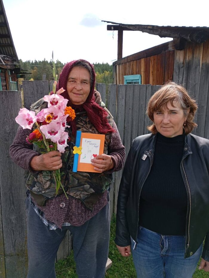 Сегодня в Черемшанском поселении в рамках декады активного долголетия, посвященной Дню ветерана труда Иркутской области, социальные работники совместно с «серебряными» волонтерами Гиндулиной М.Г. и Насыпной Н.Н. провели поздравительную акцию «От всей души с поклоном и любовью» и сердечно поздравили жителей села, имеющих звание Ветерана труда Иркутской области.